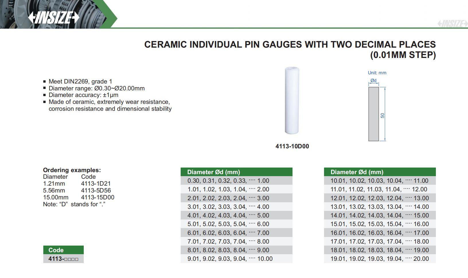 Ceramic Individual Pin Gauges With Two Decimal Places (0.01Mm Step)