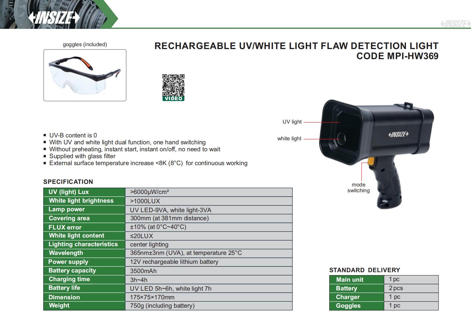 Rechargeable Uv/White Light Flaw Detection Light